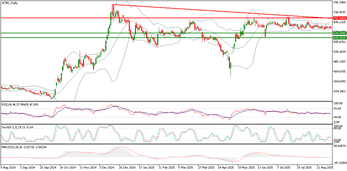 TECH NOTE: ATRL is moving ahead after taking a correction but key resistance region stands at 712 and if sustained above this region then next targets would be insight.