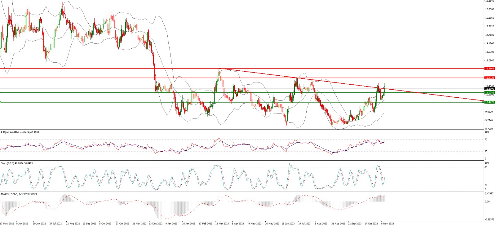 Buy above 11 with strict stop loss of 10.40 and profit targets at 12 and 12.60