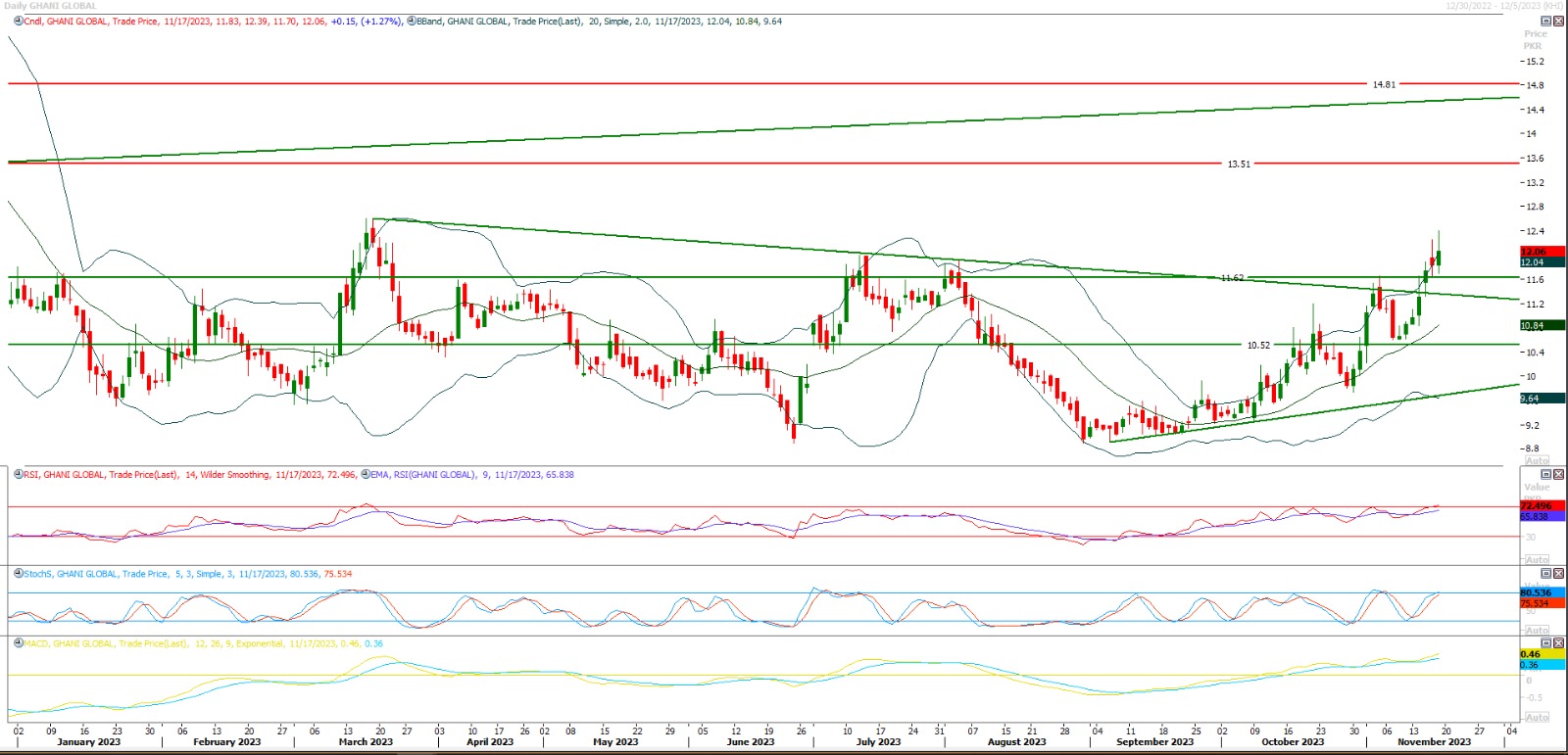 Backed by daily momentum indicators in full bullish swing, GGL is poised to target the impressive milestones of 12 and 12.60 Rs in the days ahead. Seize the opportunity by entering the market above 11 Rs, safeguarded by a prudent stop loss at 10.40, and unlock the potential for lucrative gains.