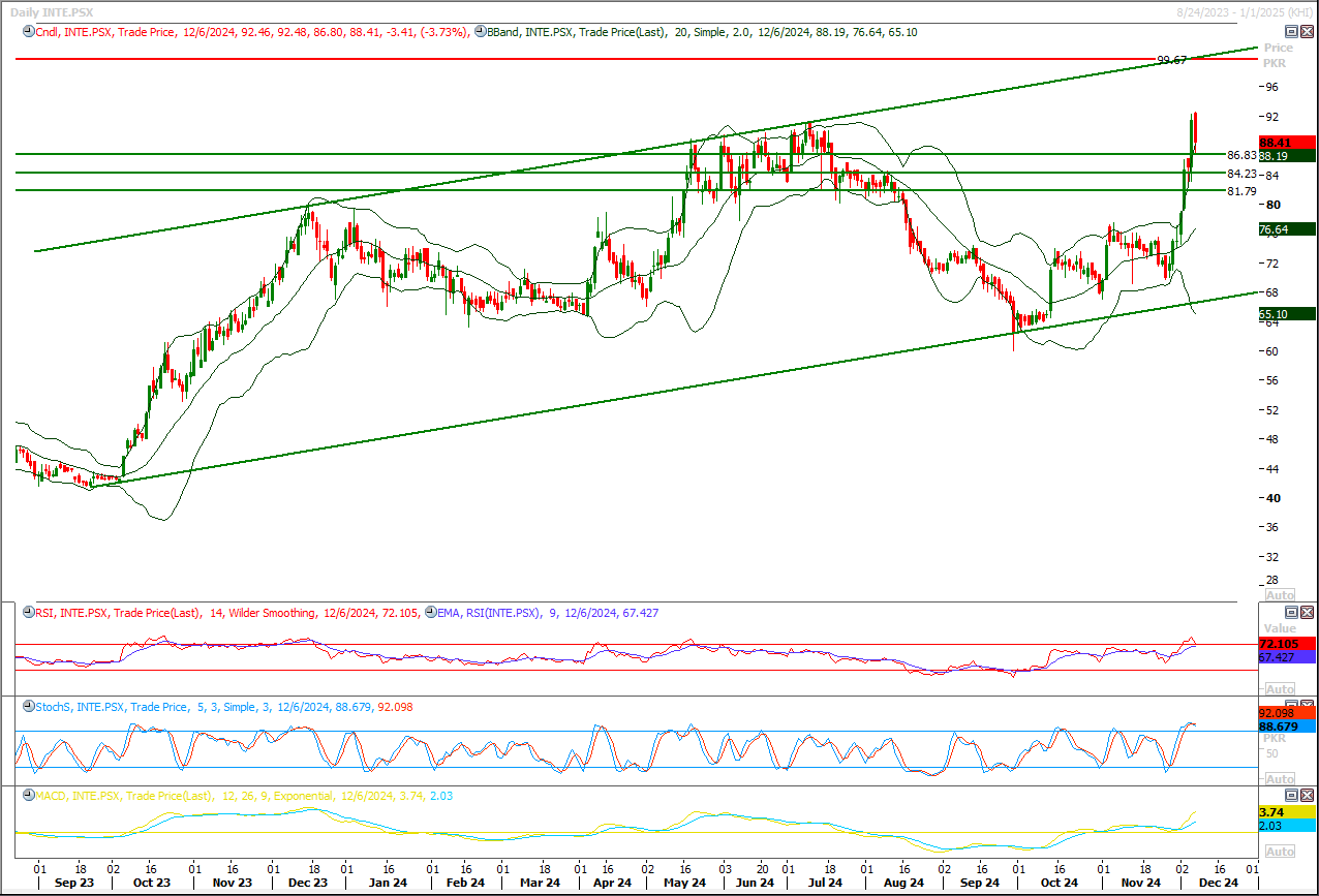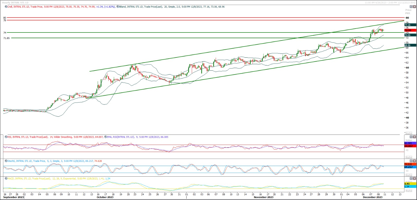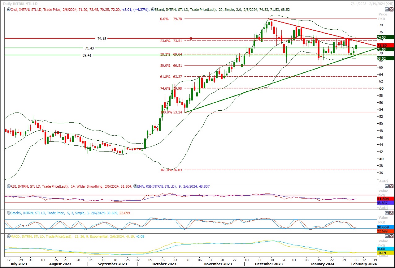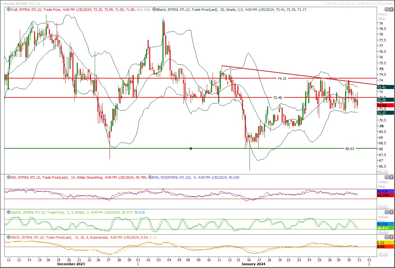 Short sell ISL below 75 with strict stop loss of 77 and profit target at 71 with extension towards 69.