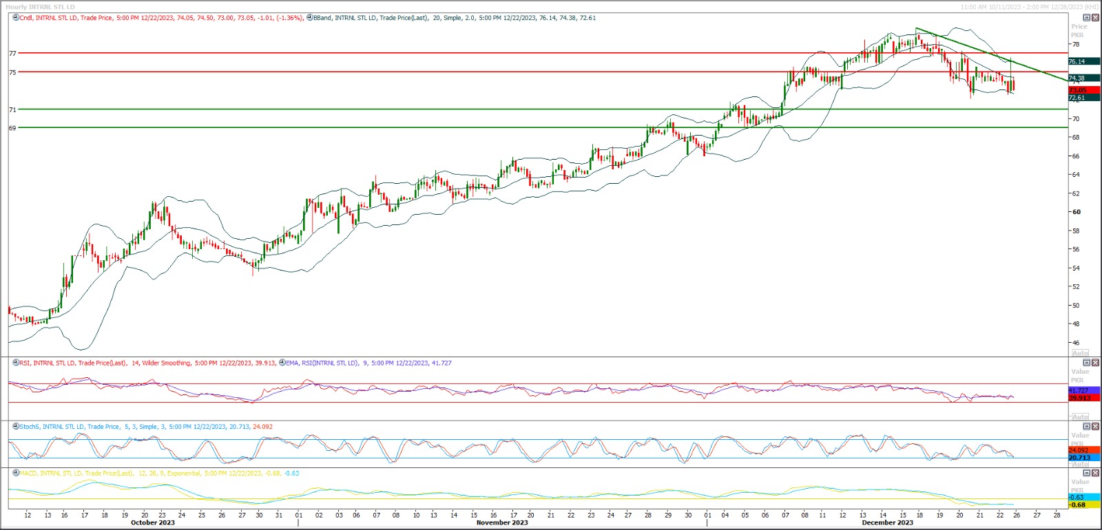 TECH NOTE: ISL is moving downward after facing rejection from a horizontal resistant region at correction levels of its last bearish rally on hourly chart.