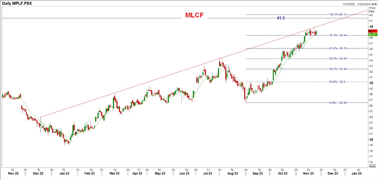 Tech Note: MLCF is moving inside a bullish price channel on weekly chart towards expansion of its recent bullish correction.